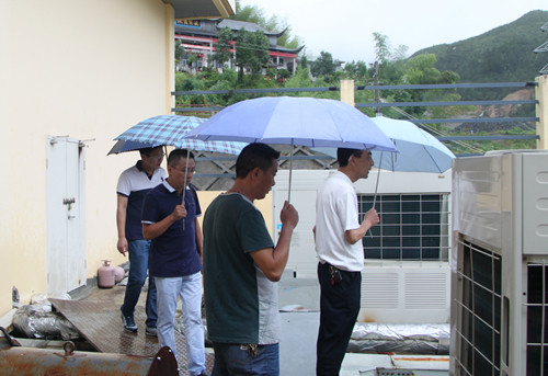 8月9日上午,繆穎院長(zhǎng)、朱澤雄書記、石康松副院長(zhǎng)帶領(lǐng)院辦、總務(wù)科、保衛(wèi)科、水電班等相關(guān)部門負(fù)責(zé)人冒雨到院內(nèi)各處查看超強(qiáng)臺(tái)風(fēng)“蘇迪羅”所造成的災(zāi)情。本次臺(tái)風(fēng)來(lái)臨前,收到氣象部門預(yù)報(bào)和上級(jí)主管部門通知后,院領(lǐng)導(dǎo)高度重視,8月7日晚召集中層以上干部召開防御強(qiáng)臺(tái)風(fēng)專題會(huì)議布置防臺(tái)工作,同時(shí)還向全院引發(fā)了防御強(qiáng)臺(tái)風(fēng)的通知,對(duì)災(zāi)害防御、應(yīng)急準(zhǔn)備等做了細(xì)致的部署。8月7日下午副院長(zhǎng)何邦劍帶領(lǐng)相關(guān)職能科室負(fù)責(zé)人進(jìn)行行政查房,排查安全隱患;8月7日晚,院辦、保衛(wèi)科、宿舍樓管理小組工作人員到存在安全隱患的飛鳳新村舊宿舍樓逐戶發(fā)放安全疏散通知,告知住戶舊宿舍樓存在的安全隱患、動(dòng)員逐戶安全疏散。8月8日全院取消雙休日,繆穎院長(zhǎng)坐鎮(zhèn)指揮,全院做好防御臺(tái)風(fēng)的一切準(zhǔn)備工作。